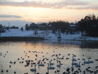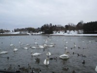 凍えるような寒さです。 白鳥が池に点在し、7時の時点で正確な数が数えられません...