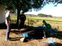 全員の完成まであとあずか。 持ち手に苦戦しています。 笑顔で完成したバックを持...