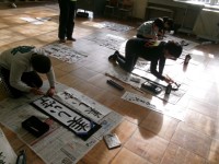 糸のこぎりで板を切ることが終わり、着色作業に入っています。 ニスを縫って、照り...