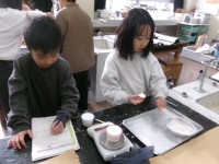 「物による重さのちがい」の学習です。 砂糖と塩を手でもって比べました。 「塩の...