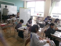 教室についたてを置き、前後で学習を進めます。 担任が指導し、学習補助員が見届けま...
