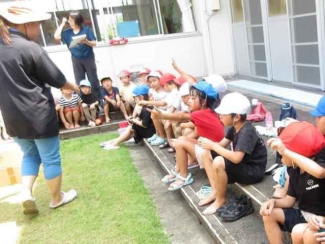 生活科の学習で、1週間前に、本校の砂場で、隣の水橋幼稚園のお友達と交流活動をしました。