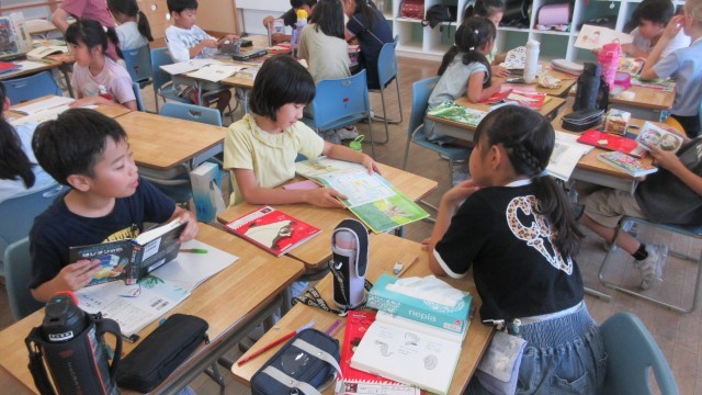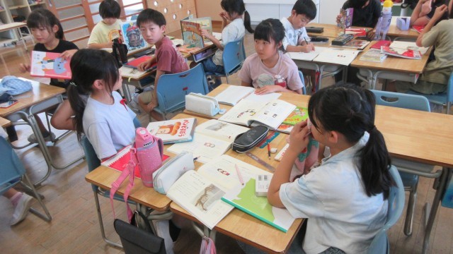 2学期に入り学校生活に少しなれてきました。国語では夏休み中に読んだ本からクイズを出し合い、本を紹介しました。友達の話をよく聞いてクイズに答えていました。2学期も協力し合って学んでいきます。