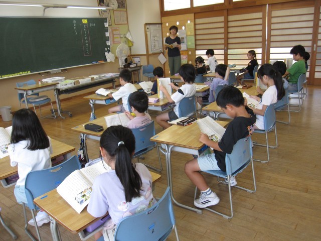 国語では、「どうぶつ園のじゅうい」の学習をしています。獣医さんは様々な仕事をしています。一日の中の「いつ」「どんなしごとをするか」に注目して学習します。