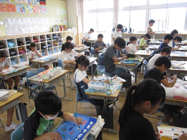 図工「あの時 あの場所 わたしの思い」という題材で絵をかいています。水彩で着色し、そろそろ仕上がってきました。