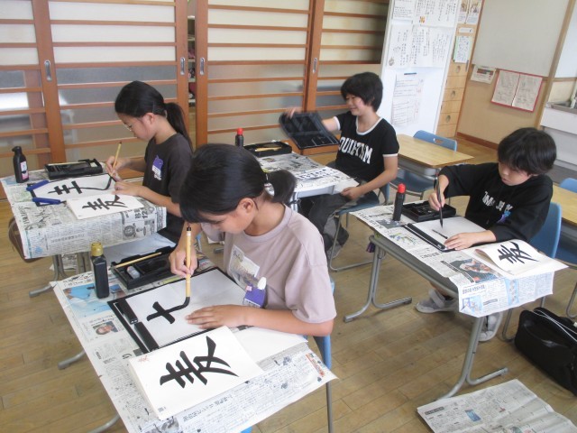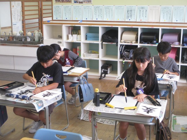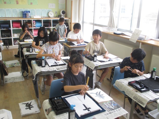 今日は「麦」という字を清書しました。「麦」という字には、2つの「左はらい」がありますが、終筆の向きが少し違うというポイントに気を付けて、書きました。みんな、集中して静かに書くことができました。