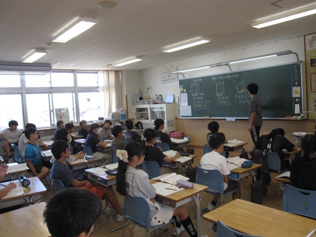 算数では「角柱・円柱の体積の求め方を考えよう」の学習をしています。きょうは三角柱の体積を求めていました。どれも公式に当てはめると求められます。学習発表会に向けて練習が続いていますが、切り替えて授業に集中しています。