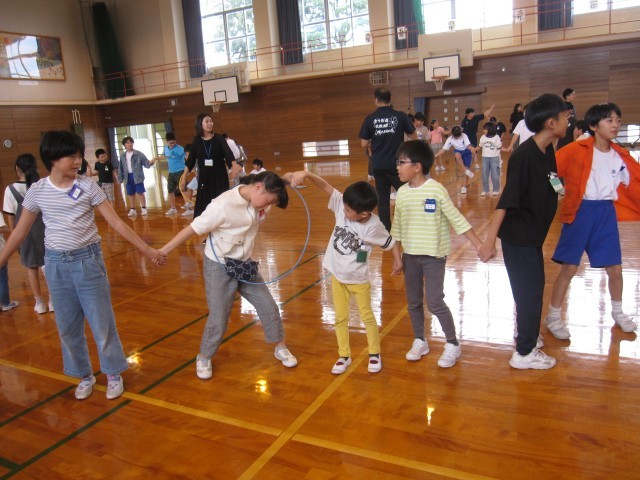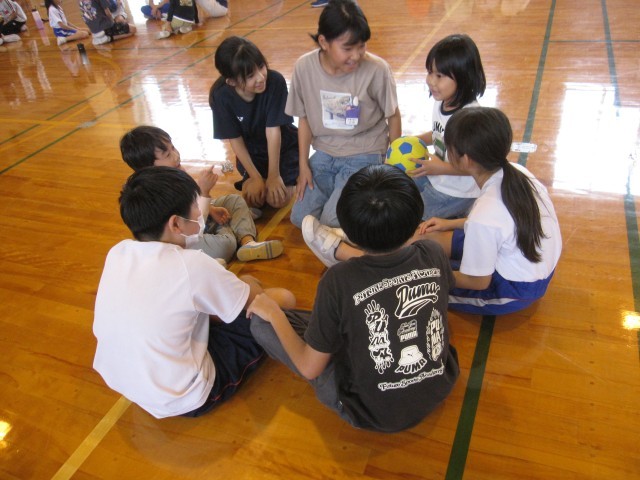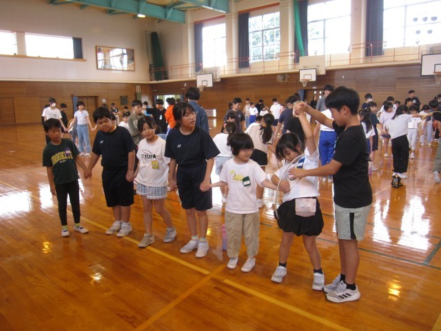 きょうのファミリー活動は2年生が企画しました。「フラフープくぐり」と「しりとりばくだんゲーム」です。ルール説明やお知らせの放送などしっかりと役割を果たしていました。2年生のみなさん、ありがとうございます。