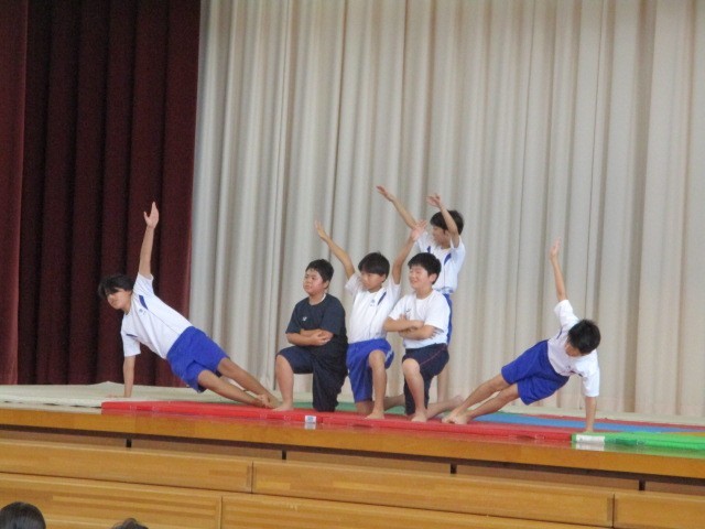 5年生は、器械体操を中心とした体育の発表を行いました。