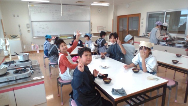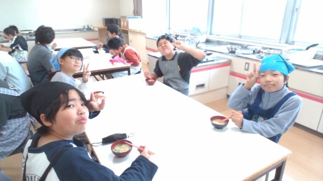 前回の学習で、おだしのすごさを体験した子供たちだったので、「しっかりおだしをとろう!」とグループで声を掛け合いながら、調理に臨んでいました。