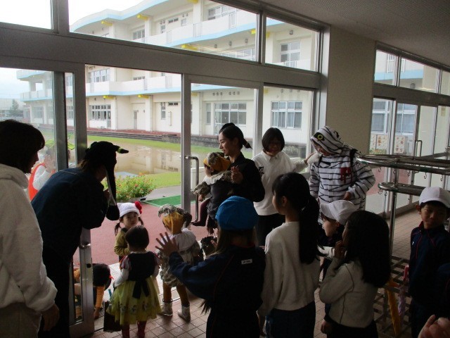 イマージョンALTが一足早くハロウィンを届けてくれました。キャラクターに扮し、各教室を巡りました。いつもどおりしっかり授業のサポートもしています。昨日は、水橋幼稚園の親子サークルの方々が仮装をして訪問してくれました。秋のお祭りをみんなで楽しんでいます。