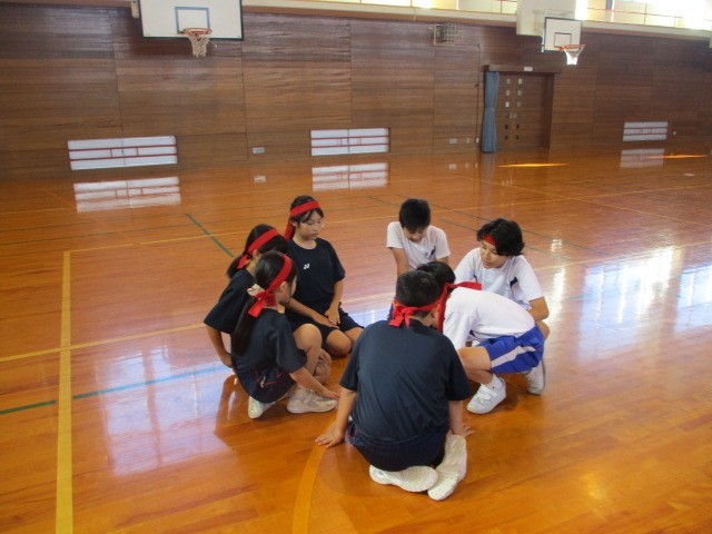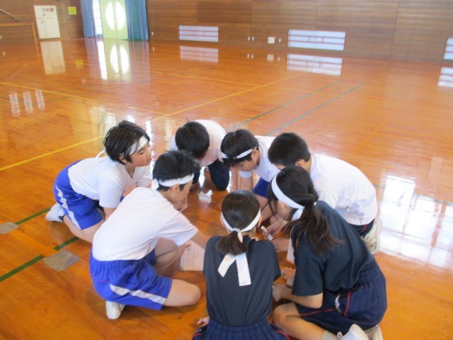 ティーボールを行っています。練習の仕方や試合での作戦を話し合っていました。青団には強力な助っ人が加わっていました。