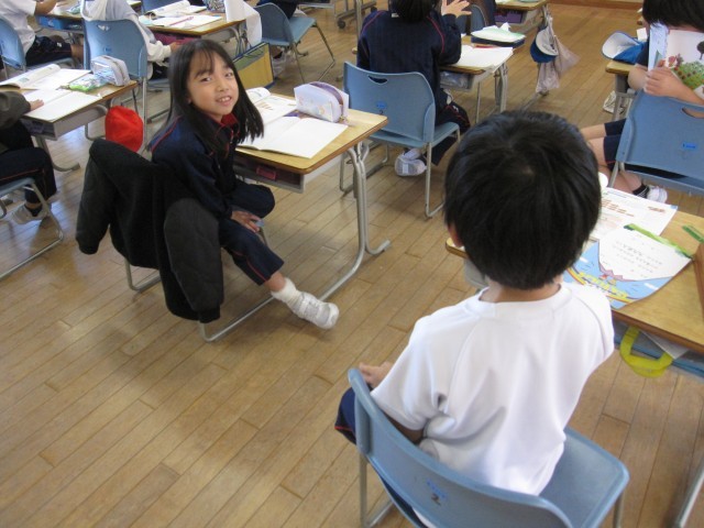 算数の時間です。九九の学習が進んでいます。時間があると、お互い暗唱した九九を聞いてもらっています。