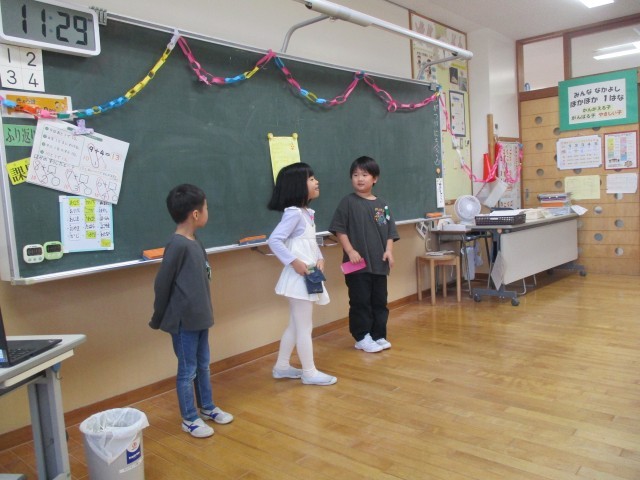 今日はハロウィン。1年生は以前から計画、準備していたハロウィン集会を行いました。これまでは屋台のように、それぞれが考えた出し物をそれぞれ行きたい所からまわっていく方法で集会を行っていました。今回は全員が同時に活動を行って楽しめる活動をそれぞれの係が計画準備してきました。ダンス、宝探しのようなゲーム、イラスト対決などさまざまな出し物が準備されていました。初めてのこともあり、時間が足りず、来週も延長して行うことになりましたが、今日行った活動はみんな楽しく行うことができました。