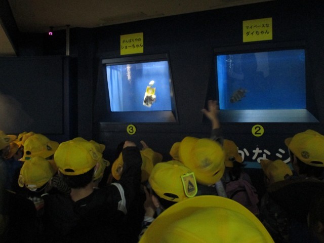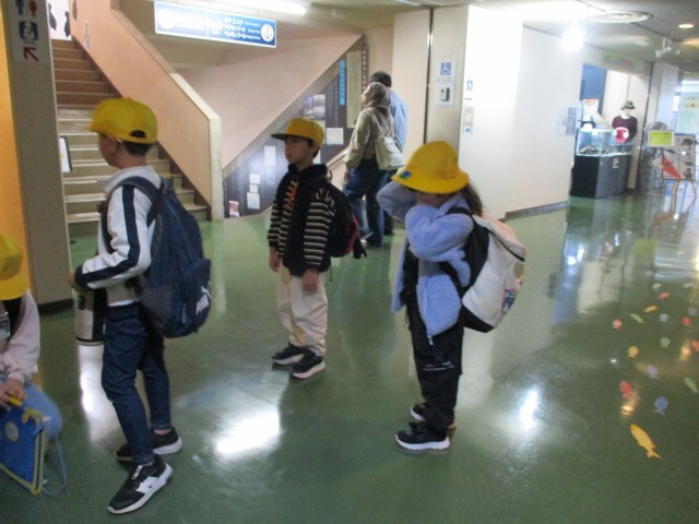今日は4校合同校外学習で魚津水族館に行ってきました。水橋地区の3校の1年生とグループ活動を行いました。はじめの自己紹介では緊張した様子がみられましたが、声をかけ合いながら仲良く協力して水族館をまわることができました。
