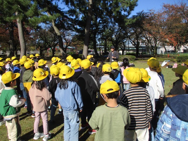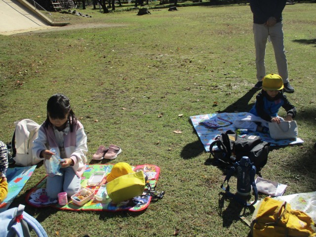 お家の人に作ってもらったおいしいお弁当を食べ、公園で遊んだりドングリを拾ったりと楽しく充実した校外学習となりました。最後には水橋学園でまた会おうね、いっしょにがんばろうねという気持ちをこめて「See you!!」と言ってお別れしました。