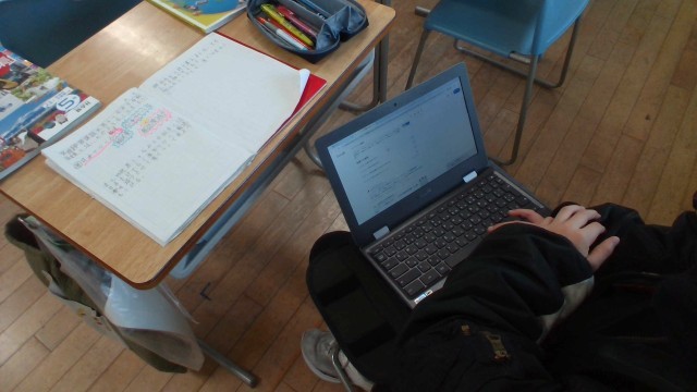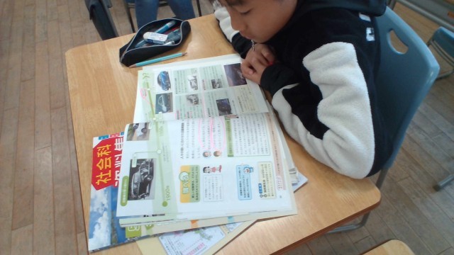 教科書の資料と本文とをカラーペンで結びながら考えたり、関連する内容の疑問を主体的に端末を用いて調べながら学習を進めています。