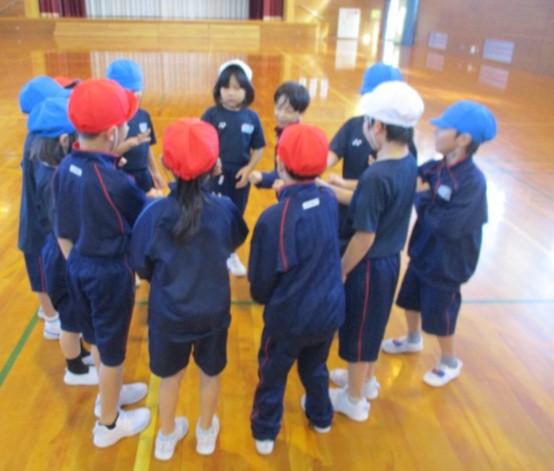 今日は、他校から来てくれた友達と一緒に体育をしました。チームで協力して段ボールの的に向かってボールを投げる運動遊びです。体育のあとの休み時間には、みんなで鬼ごっこをしました。次回の交流も楽しみにしながら、「またね」とお別れしました。