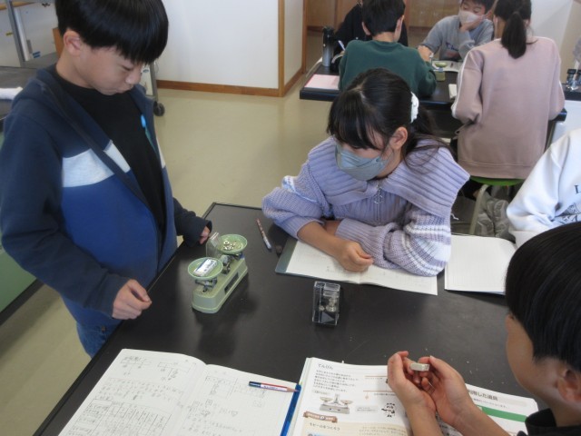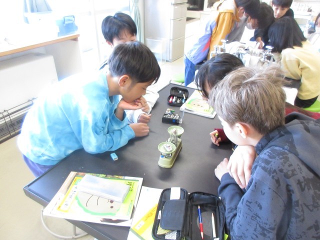今日は、理科の授業で上皿てんびんを使い、自分の消しゴムの重さを量りました。「消しゴム重さランキング」をつくり、楽しみながら上皿てんびんの使い方を学習しました。