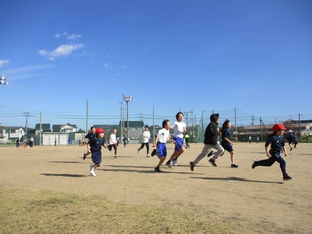 秋晴れのもと、トレーニングタイムでグラウンドを元気よく走りました。きょうは風も暖かく外で気持ちよく走ることができました。