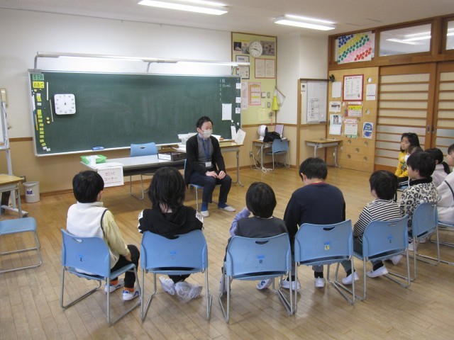 市立図書館水橋分館からお越しいただきブックトークがありました。今回のテーマは「変身」です。主人公のウサギが変身したり、おたまじゃくしがスプーンになったりするお話などが紹介されました。大豆がいろいろな食品に変身するお話もありました。明日から三連休、じっくりと本に親しむのもいいですね。