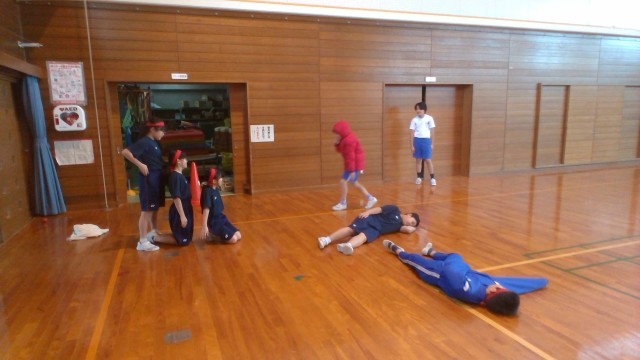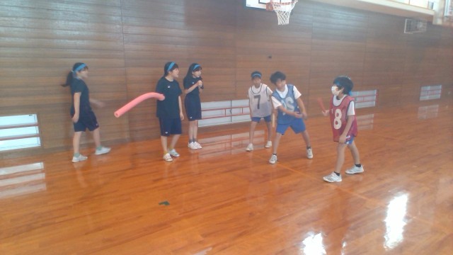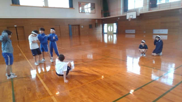 1分間の発表の中にストーリー性をもたせようと、さまざまな動きを組み合わせたり道具を用いたりと工夫が見られます。