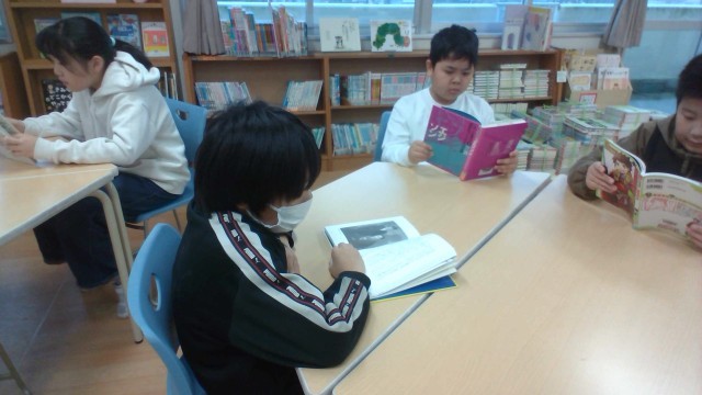 国語科の学習では、伝記を読み、偉人たちの生き方について自分と重ねて考えています。
