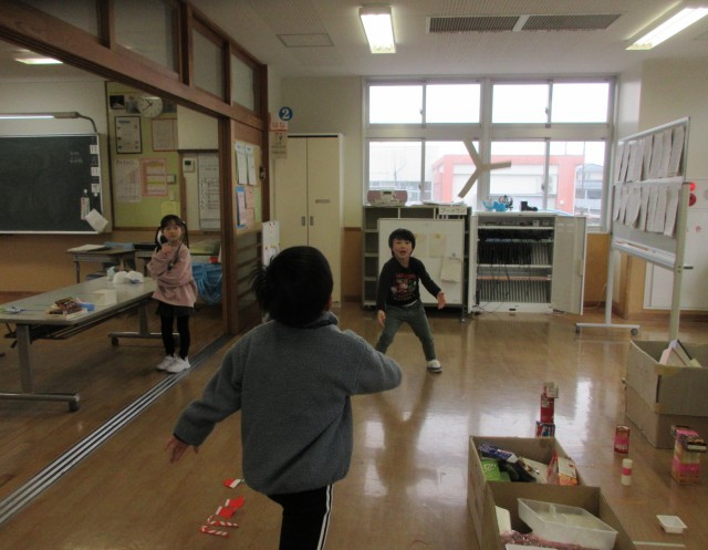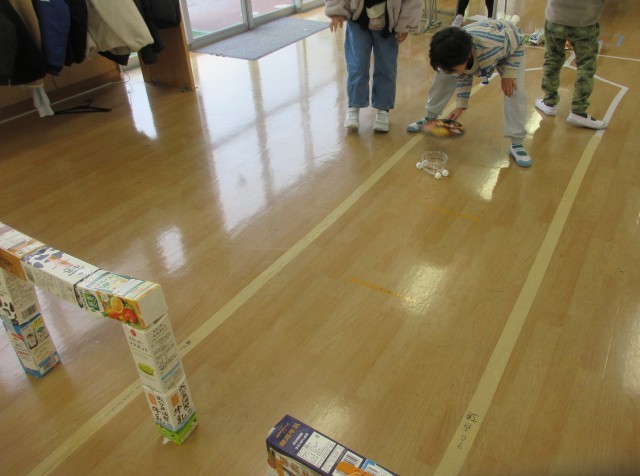 的を作ったり、トンネルを作ったり、工夫して遊び方を考えました。ブーメランをキャッチしたら賞品がもらえるなど、クラスのみんなで楽しく遊ぶことができるよう知恵をしぼりました。