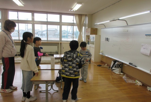 それぞれ輪ゴムてっぽう、コトコト車、パタパタカー、びゅんびゅんカー、ころりん、ブーメランのグループに分かれ、みんなが楽しめるよう協力して活動しました。