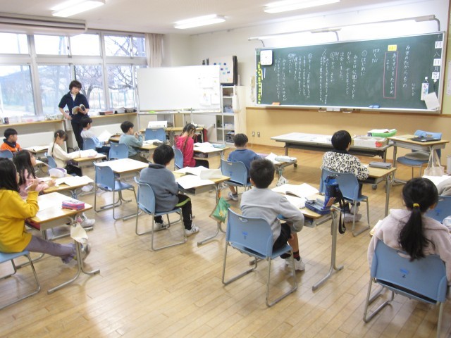 国語「みきのたからもの」の学習です。主人公が何をしたのか、どんな出来事が起こったか、あらすじをまとめていました。