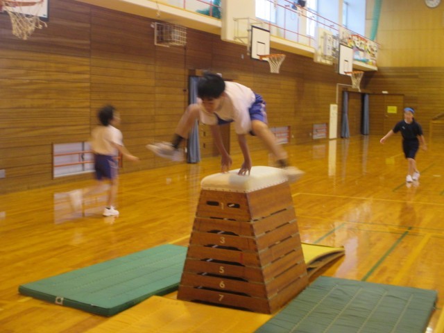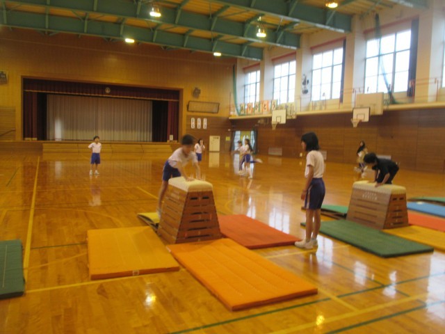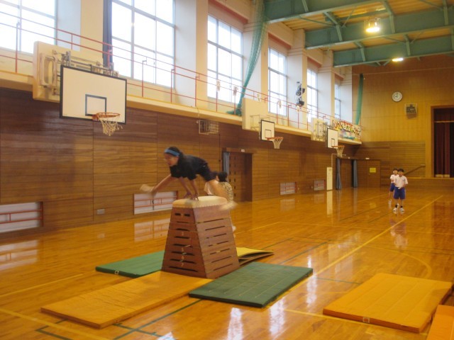 今学期の体育科最後の単元「跳び箱」の学習が始まりました。安全に気を付けながら、自分の力を伸ばそうと、一人一人ががんばっています。また、跳び箱やロイター板やマット等、準備するものも多いですが、準備や片付けもみんなで協力しながらスムーズに取り組んでいます。