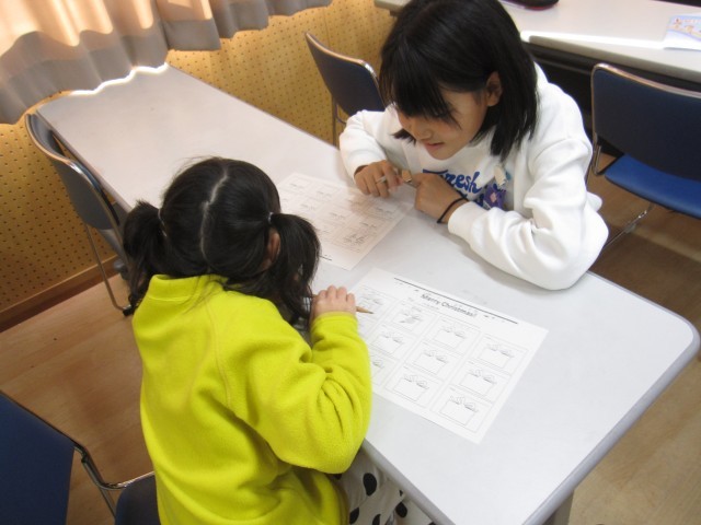 外国語活動の時間です。クリスマスが近づき、何がほしいか英語で友達と聞き合う活動をしていました。