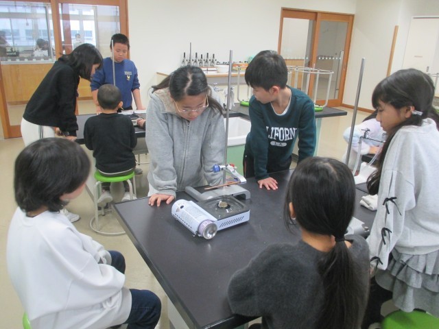 カセットコントで火をつける実験にも、少しずつ慣れてきた様子です。来週も、安全に気を付けて実験していきましょうね。
