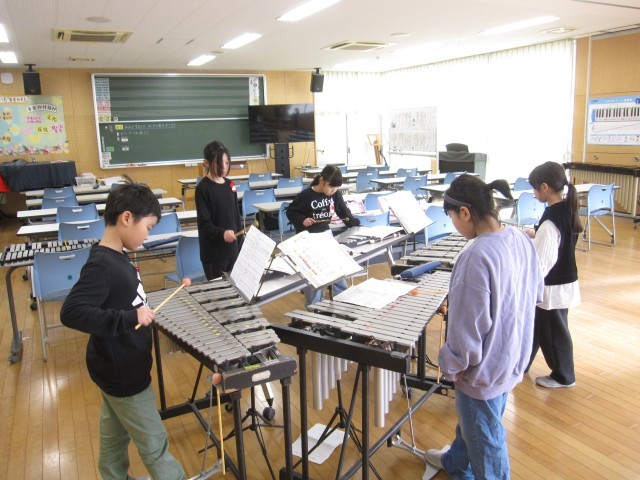 昼の自主タイムの様子です。音楽室では、何人かが集まって合奏の自主練習をしていました。教室の扉の溝をていねいにそうじしている子もいました。図書室は引っ越しのため2学期をもって閉鎖します。明日までが貸し出しです。最後まで本を借りようとしている子もいました。