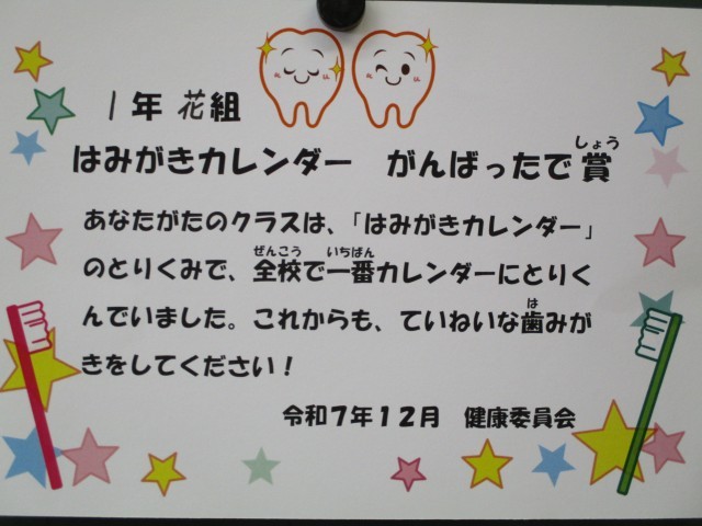 1年 歯みがきカレンダーの表彰
