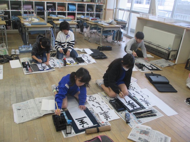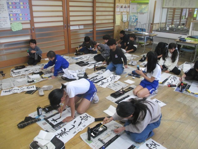 今日は2度目の書初練習を行いました。4年生は「美しい空」と書きます。漢字は大きく、平仮名は小さくのポイントに気を付けながら、4文字を書きました。文字のバランスや一字一字の「止め・はらい」なども意識して書くことを、目指しましょう!