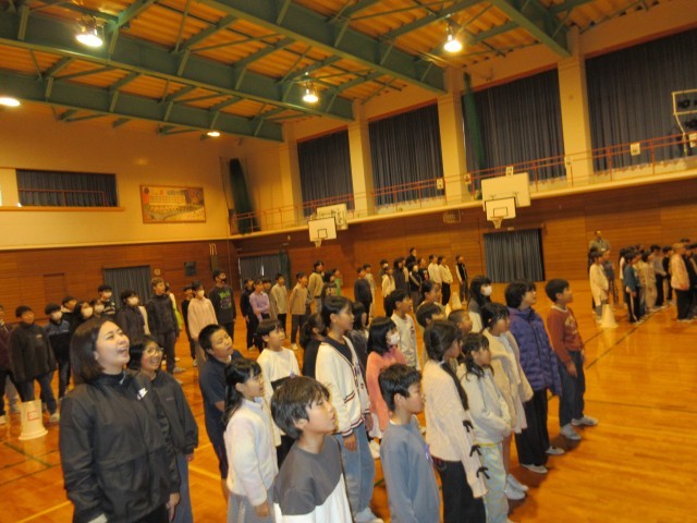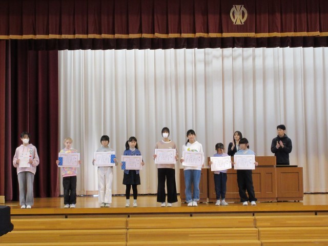 自主タイムに歌声集会と受賞伝達がありました。歌声集会では、今月の歌「ビリーブ」を二部合唱し美しいハーモニーを響かせました。