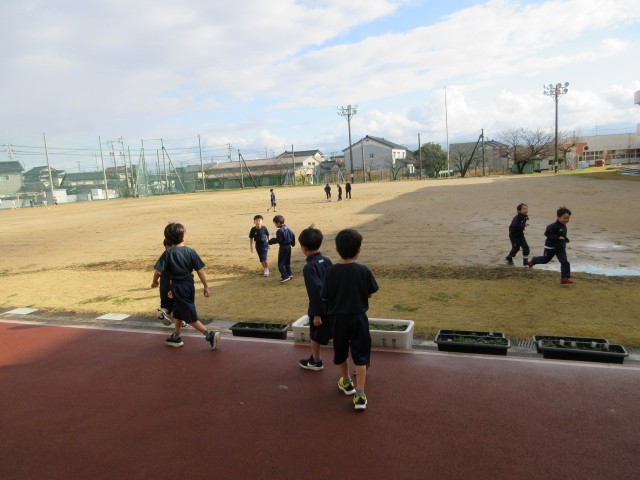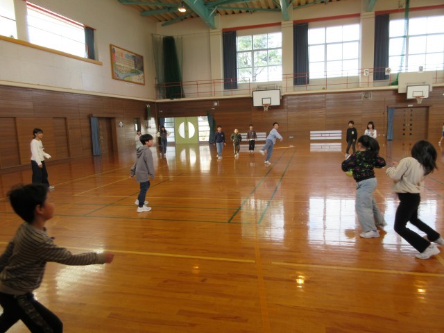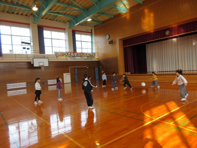寒い日が続いていますが、休み時間に元気に遊ぶ姿が見られます。きょうは3、4年生が体育館でドッジボールをしていました。1、2年生は晴れ間を見て外に出ていました。