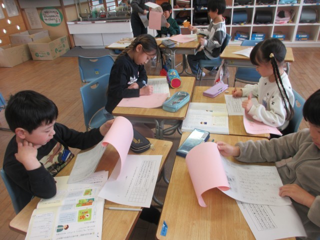 国語科では、先週から作者になって書いていたお話がいよいよできあがりました。