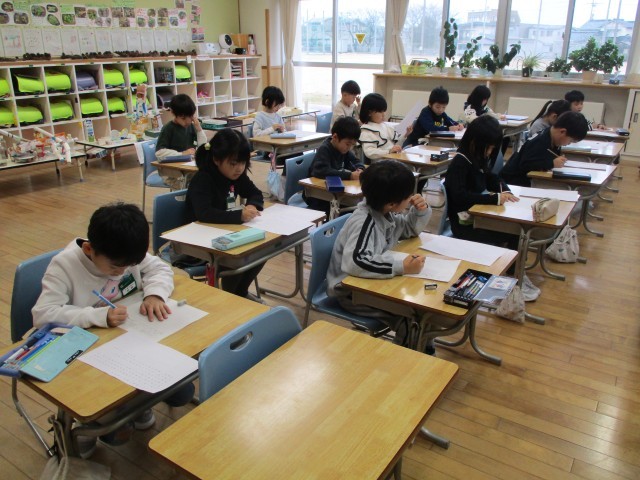 国語では、「てがみで しらせよう」の学習をしています。子供たちはお世話になった先生に手紙を書いています。昨日は、今がんばっていることや、その先生との思い出を思い出しながら下書きを書きました。そして、今日、丁寧に心をこめて清書しました。お手紙が先生に届くのを楽しみにしている子供たちです。