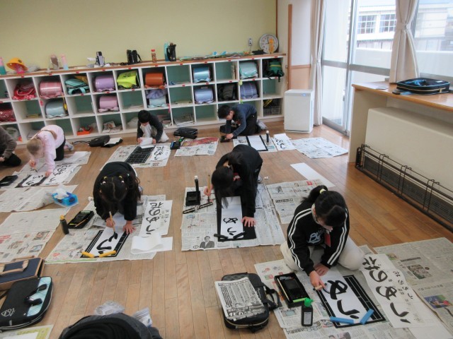 書初めの練習です。3年生は初めて毛筆で書初めをしますが、少し慣れきたでしょうか。冬休みにもたくさん練習しましょう。