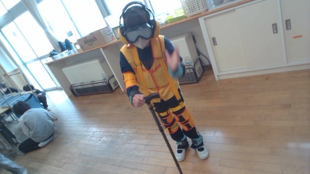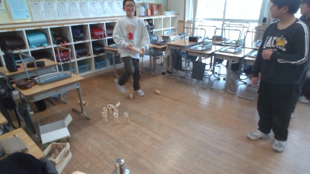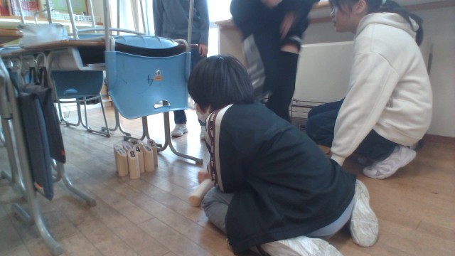先週の金曜日に、高齢者疑似体験セットやモルックをいただいた子供たち。