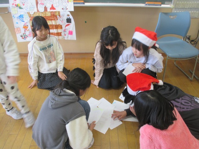 今日は、子供たちが楽しみにしていた学級集会「クリスマスパーティー」を行いました。各係がそれぞれの得意なことを生かした出し物等を用意していたので、みんなで楽しみました。また、今日は2学期最後の給食でした。子供たちから、「牛乳乾杯をしたい!」という声もあり、みんなで輪になって楽しくいただきました。
