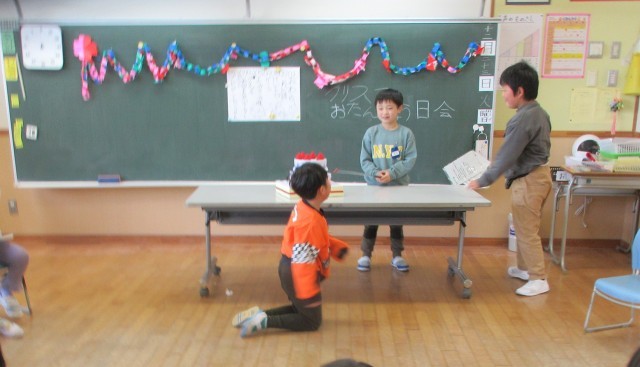 今日は12月誕生会とクリスマス会をしました。誕生日係を中心に計画を立てて、それぞれの係から出し物をしました。