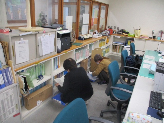 冬休みに入りました。教職員は水橋学園への引越し、環境整備作業を行いました。各所で水橋学園へ移設する文書や物品を箱詰めしたり、不要なものを廃棄処理したりしました。これからいよいよ引越し作業が本格化していきます。