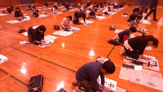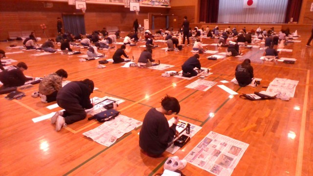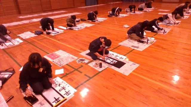 始業式後の書初め大会では、2026年への決意が表れるかのように、一画ごとに丁寧に力強く書く子供たちの姿が見られました。
