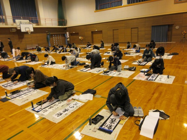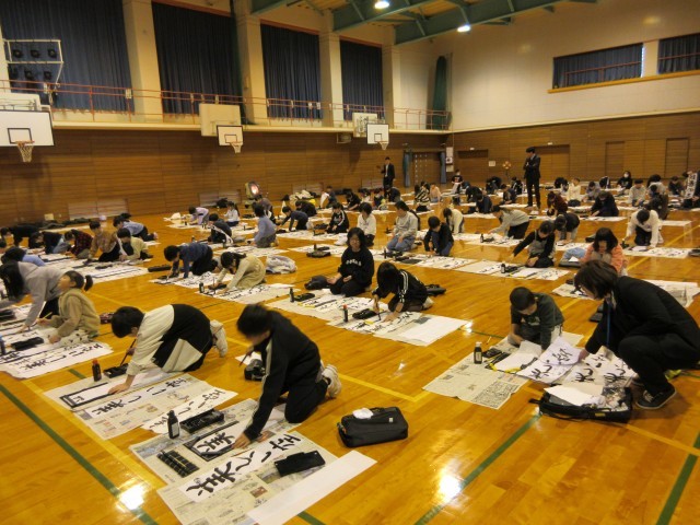 書初大会がありました。低学年は教室で、中・高学年は体育館で行いました。新年の抱負や希望を文字に託し、真剣に筆を走らせる姿が見られました。