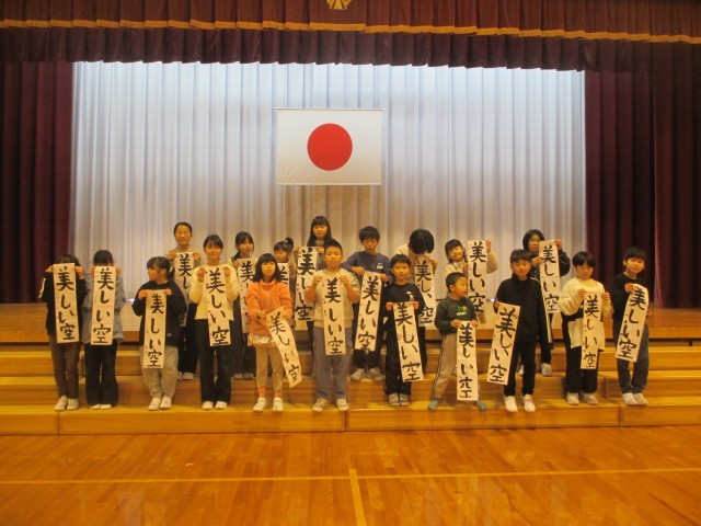 今日から3学期が始まりました。元気な子供たちに久しぶりに会えて、嬉しかったです。始業式後には、書初大会が行われました。心を落ち着かせ、一画一画、丁寧に「美しい空」という字を書きました。集中して取り組むことができていました。
