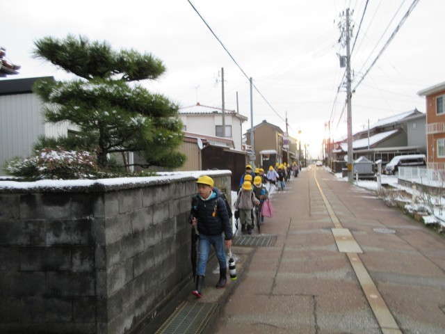 今朝はきのうからの冷え込みでうっすらと雪が積もり、路面が凍結しているところがありました。子供たちは足元に気を付けながら歩いていました。明日からの三連休は今シーズン最強寒波がやってくるとのこと。火曜日の朝は積雪が予想されます。一声かけてくださると幸いです。