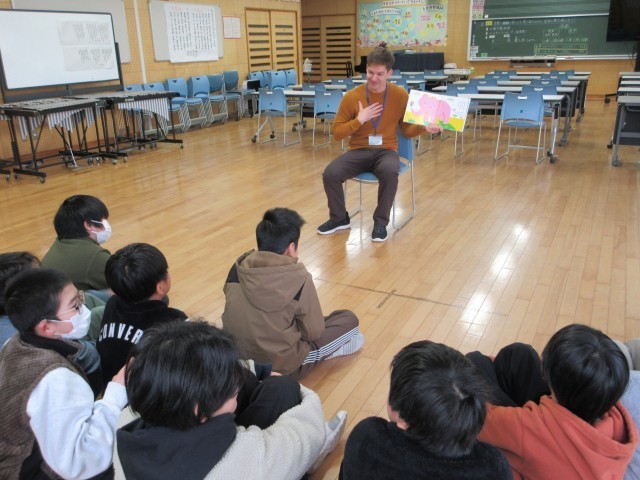今月の読み聞かせは「How Do You Do ?」というお話です。「はじめまして」といろいろな登場人物が出てきました。主に高学年が集まっていたので、英語だけで十分内容が伝わっていました。「ゾウ山花子」「黒川ピアノ」などネーミングのおもしろさが気に入ったようです。